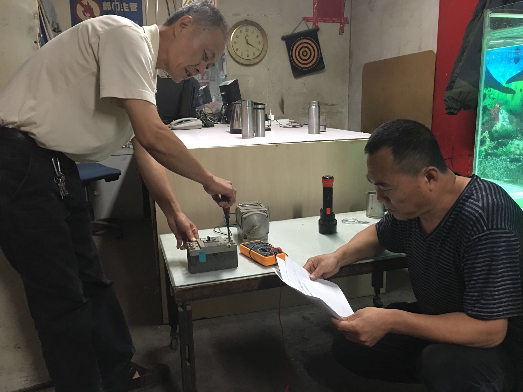 興華店參考人員在實操現場正進行緊張的操作,測試的是員工對電動機操作的掌握程度。