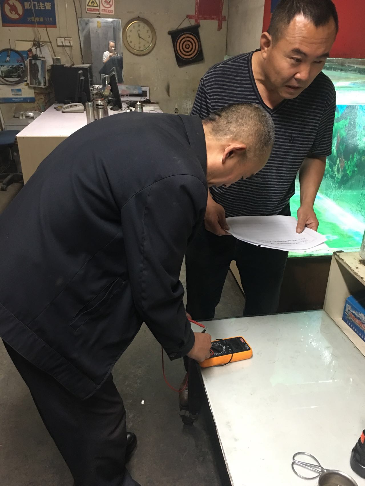 朝陽店工程部員工正在參加的是筆試及現場實操考試,考評員工對線路、接線方法的熟悉程度。